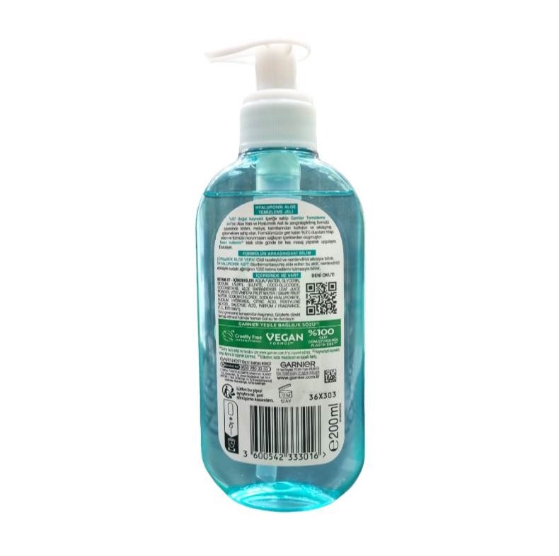 ژل شستشوی صورت گارنیر Hyaluronik Aloe (آبرسان با عصاره آلوئه ورا و هیالورونیک اسید)